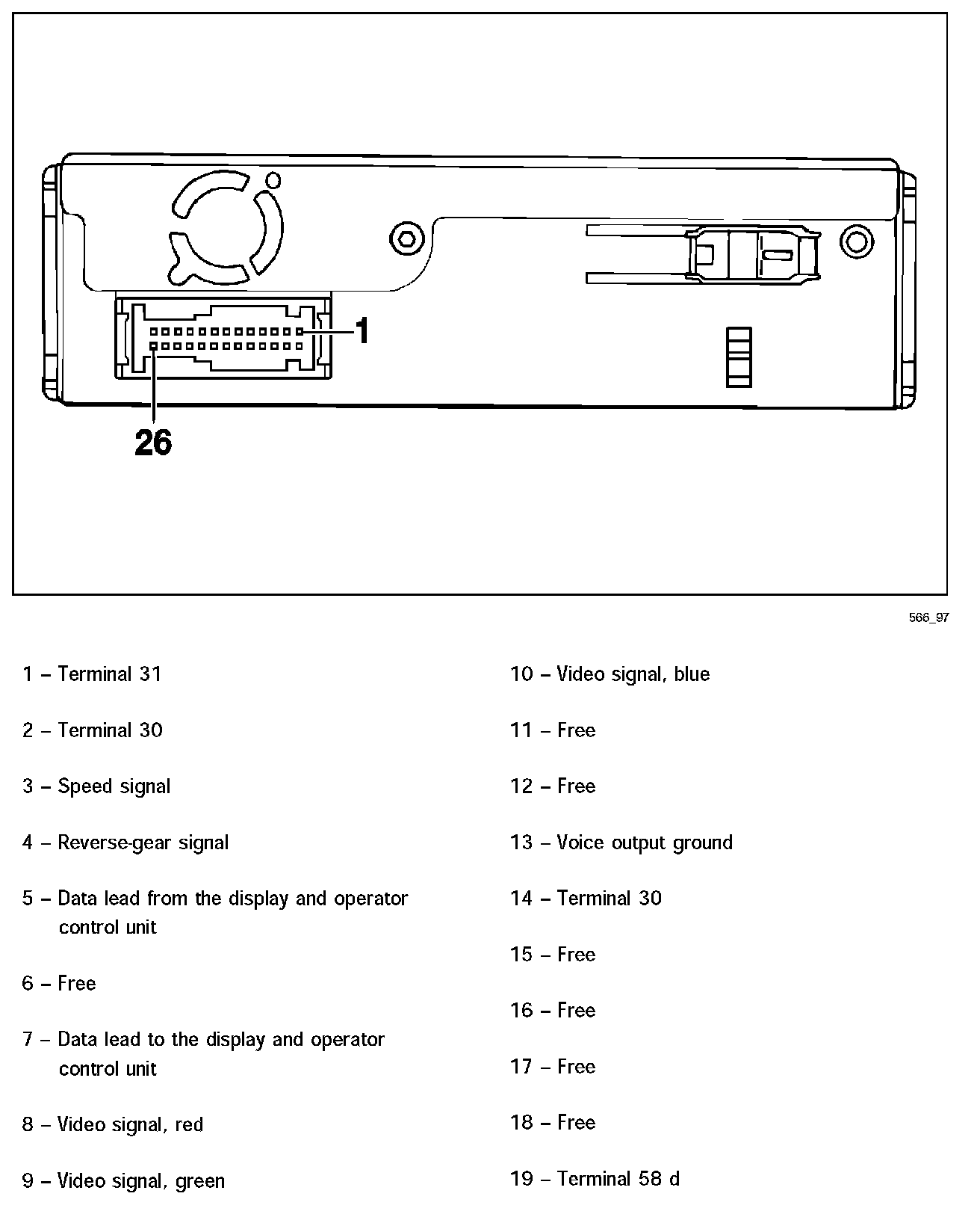 Connector pin assignment, navigation unit