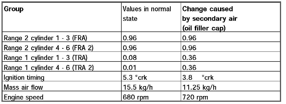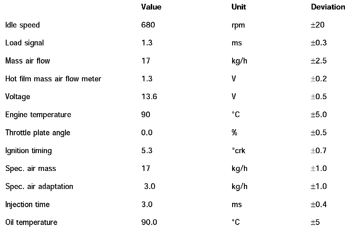 NOTE: The stated values are the result of measurements of vehicles with different mileages and in perfect condition. Different values can result from diagnosis in the workshop because of mileage and environmental influence. For DME diagnosis, it is important to look at several values simultaneously and in a collective group during troubleshooting.