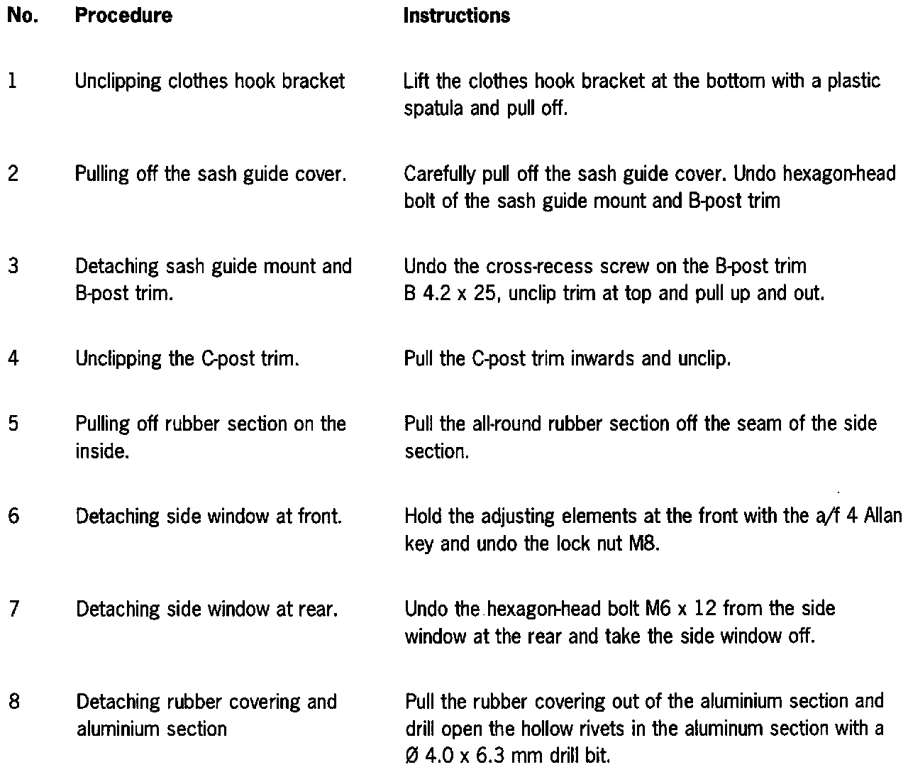 Removing side window