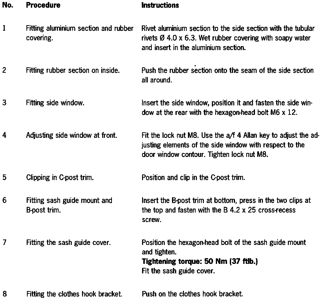Installing side window