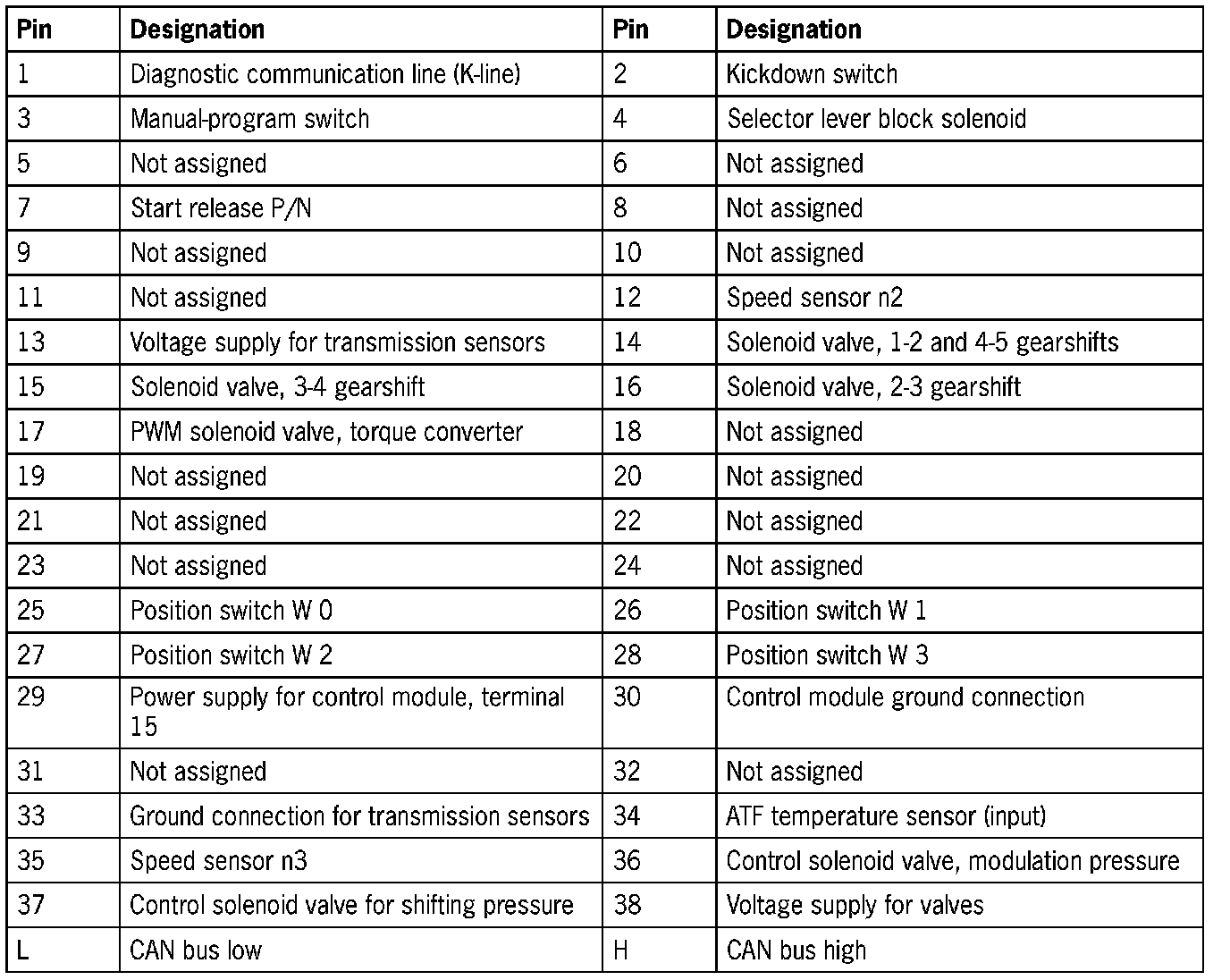 Tiptronic Control Module Connector Assignment (Part 1):