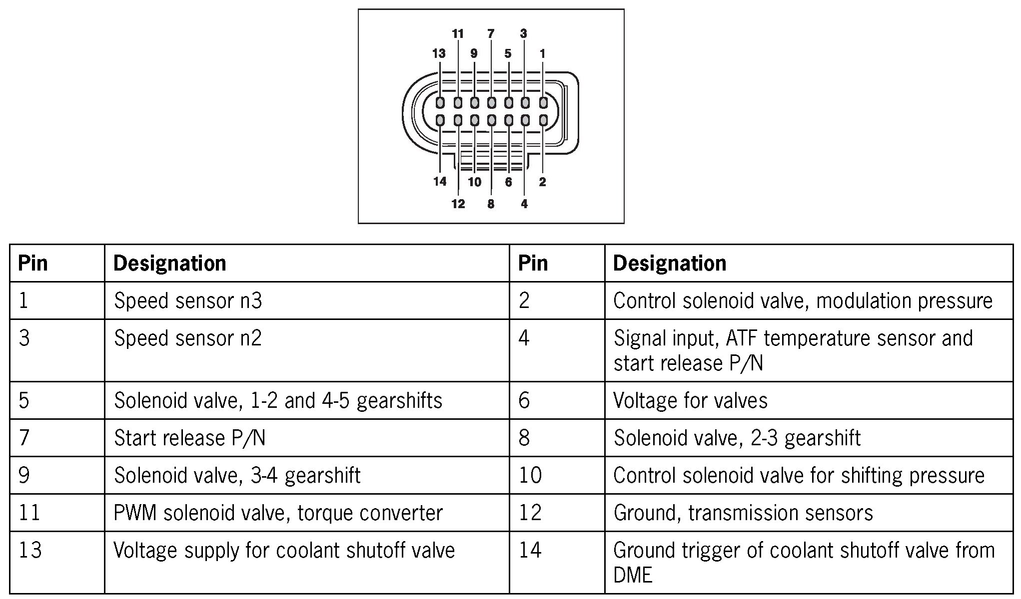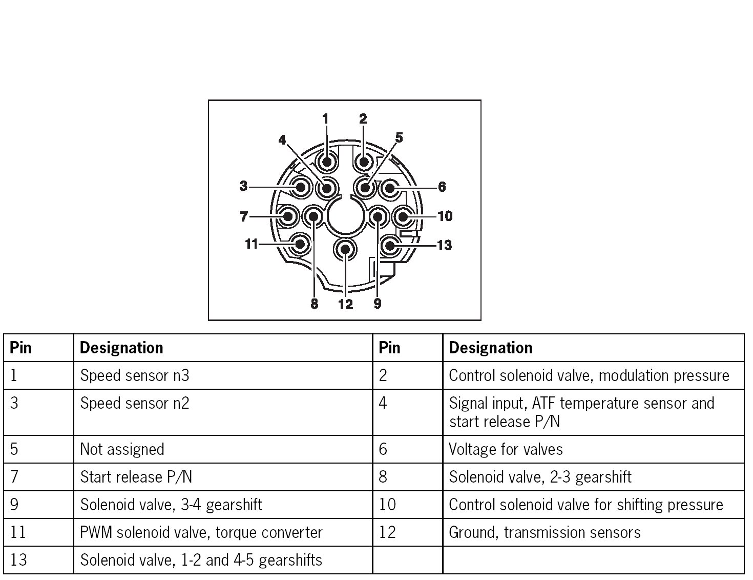 Connector Assignment - Transmission Connector (Wiring Harness Side):