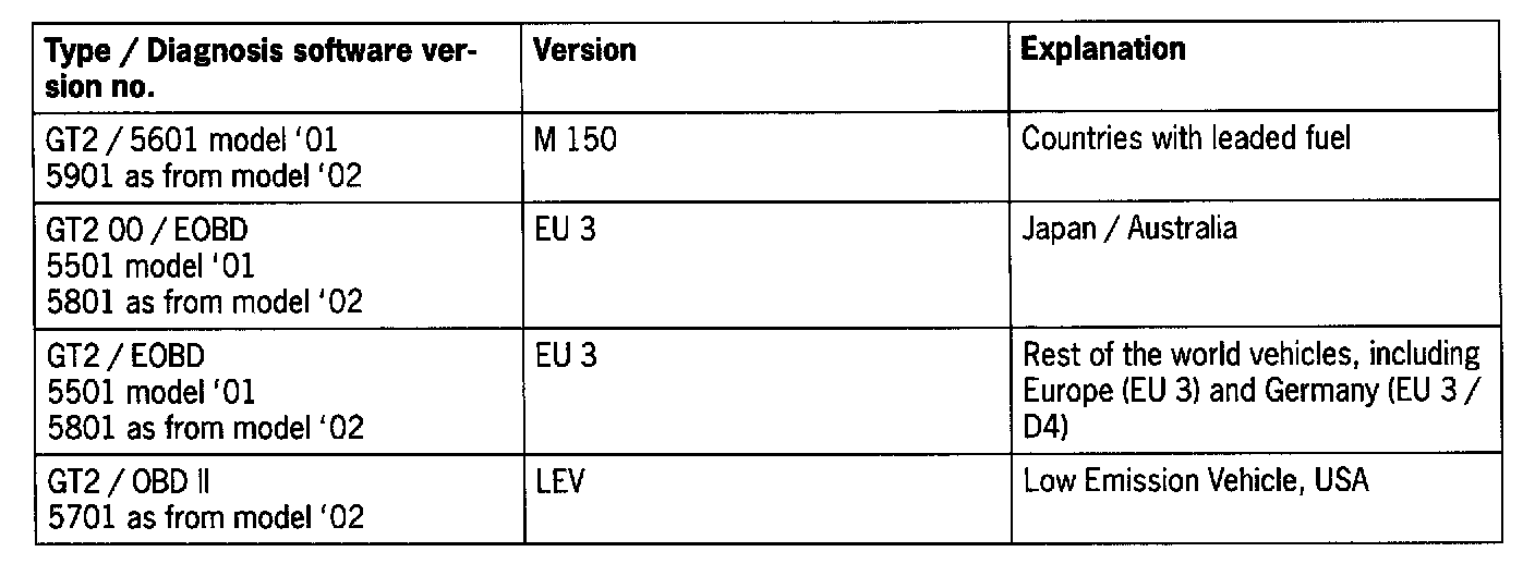 - The listed table is included in the software status 12.0, Porsche System Tester 2.