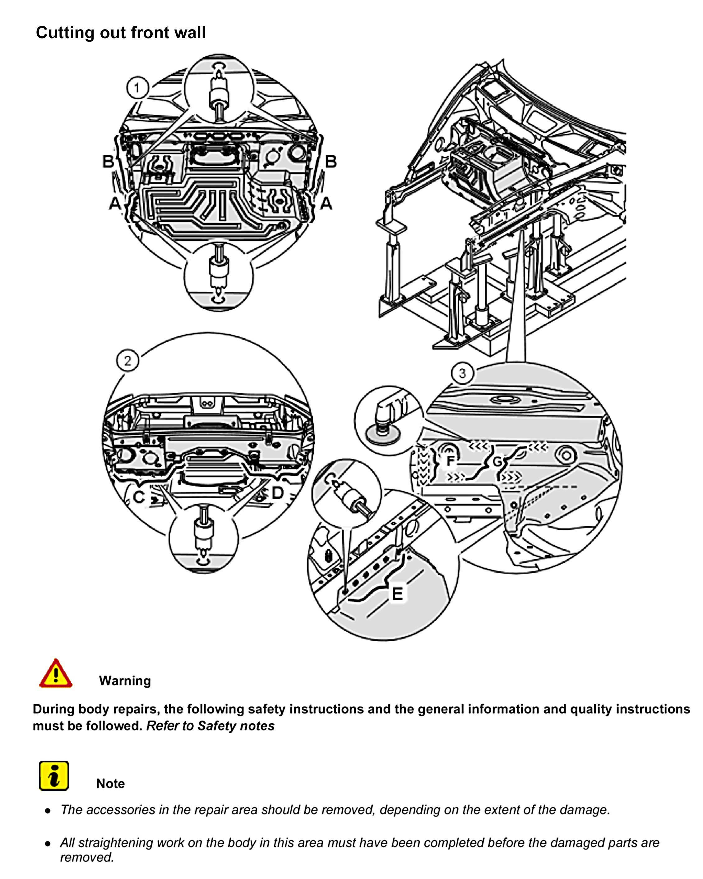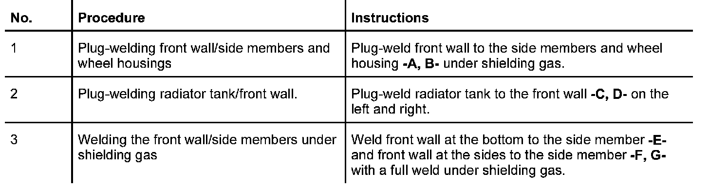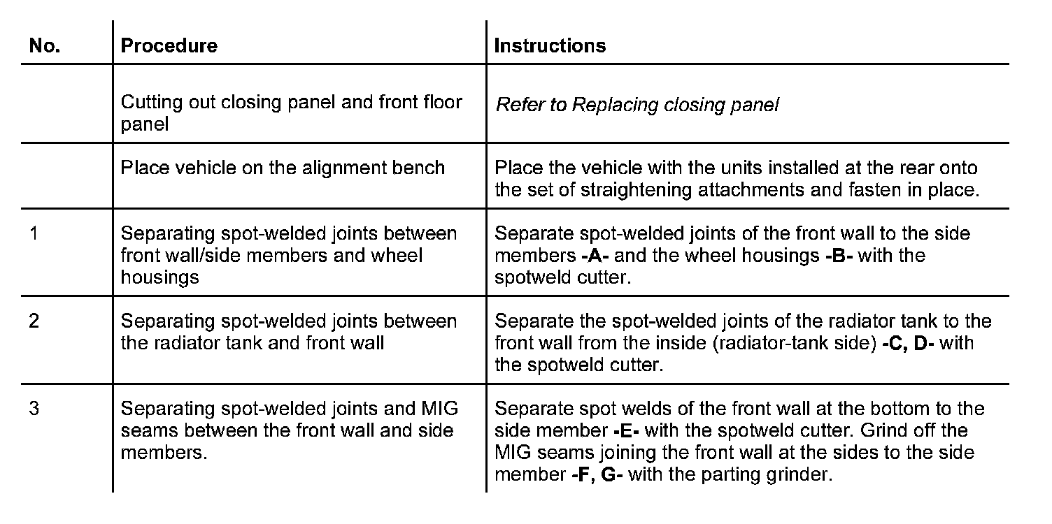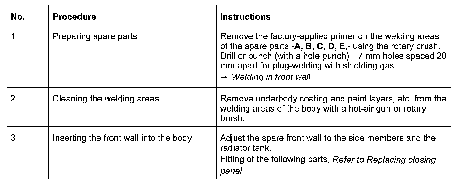 The following spare body parts are required for the sectional repair Replacing front wall: