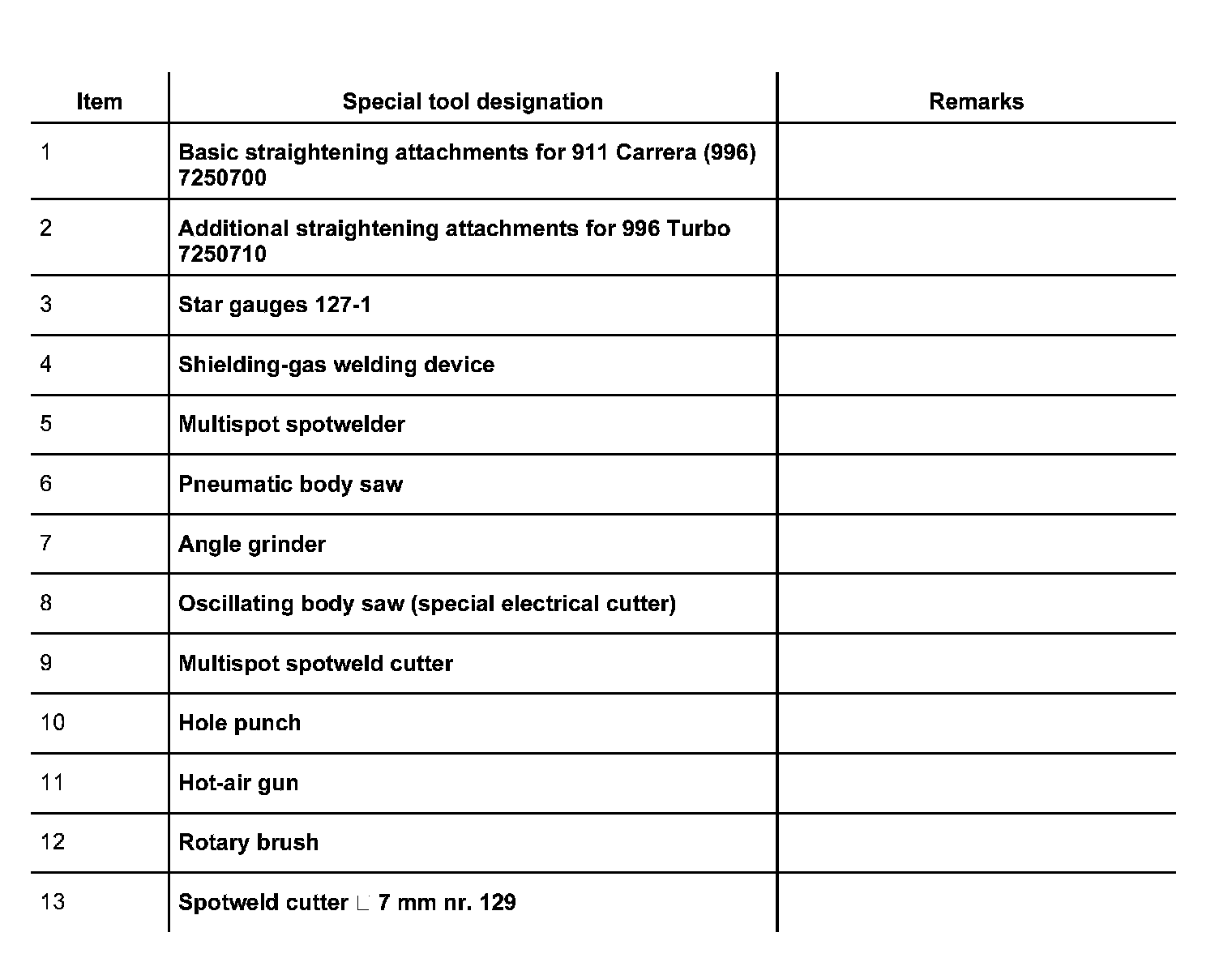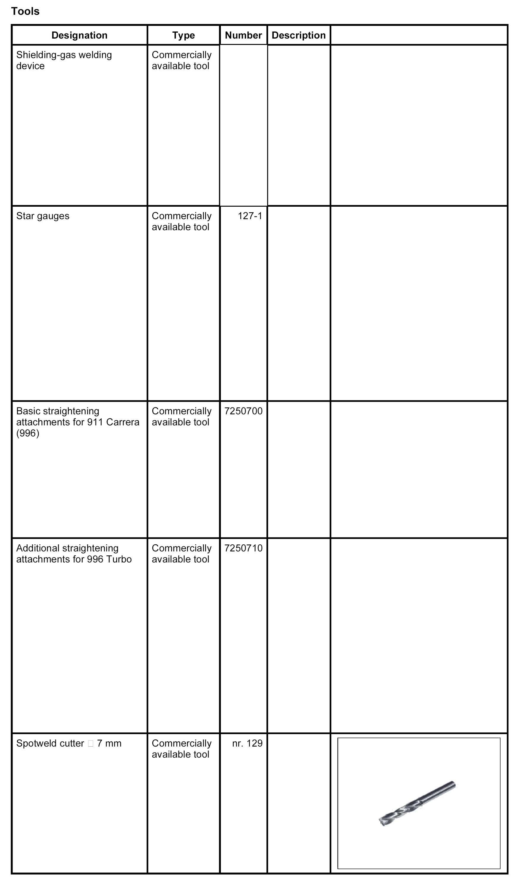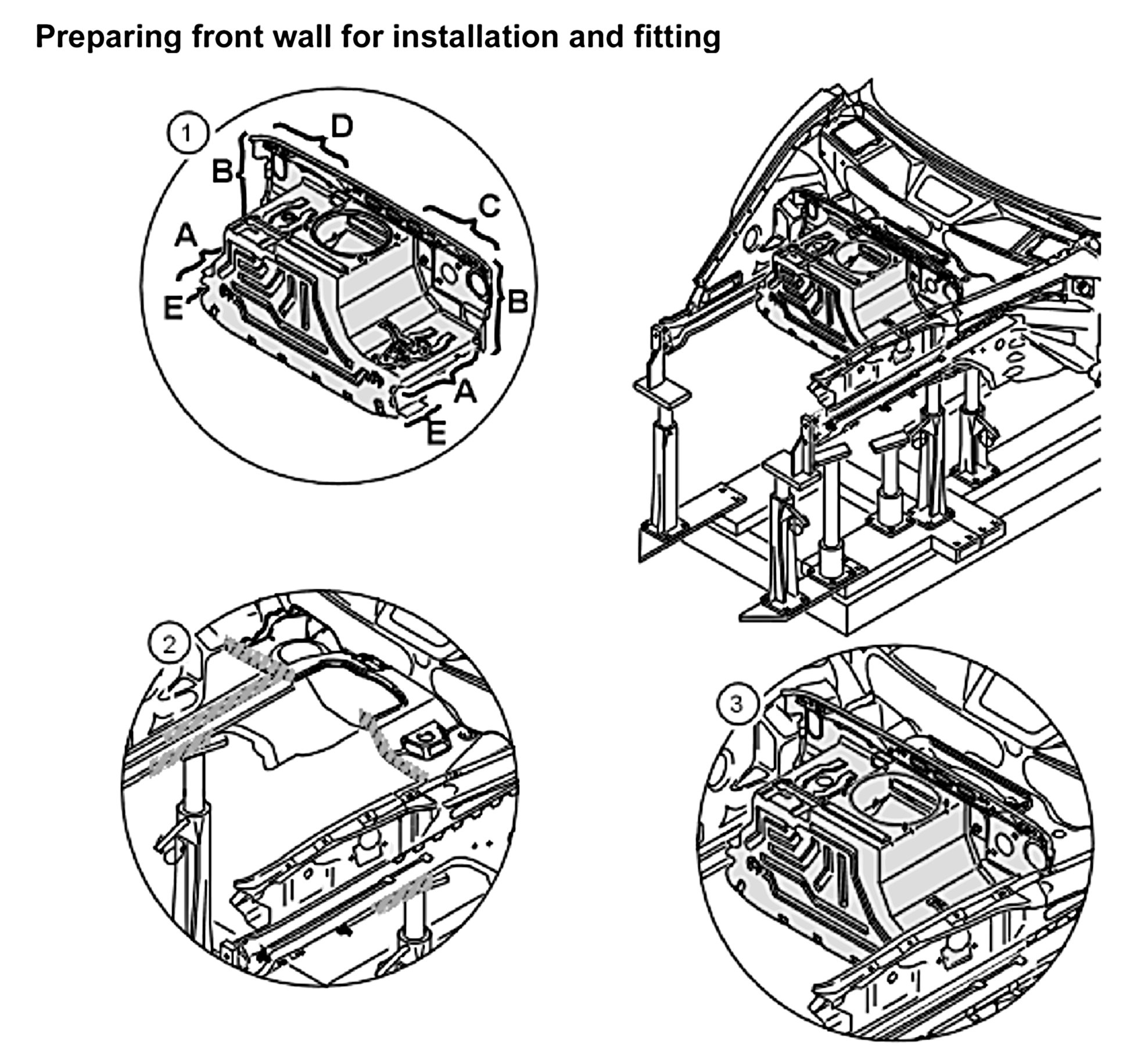 The following spare body parts are required for the sectional repair Replacing front wall: