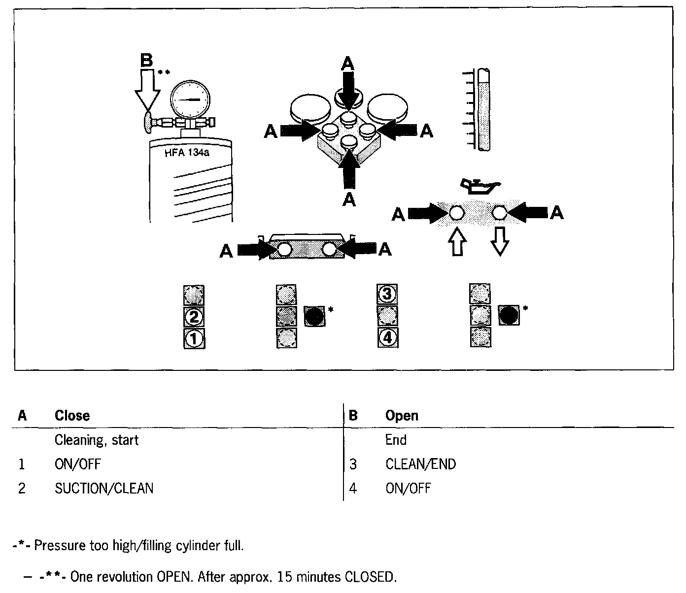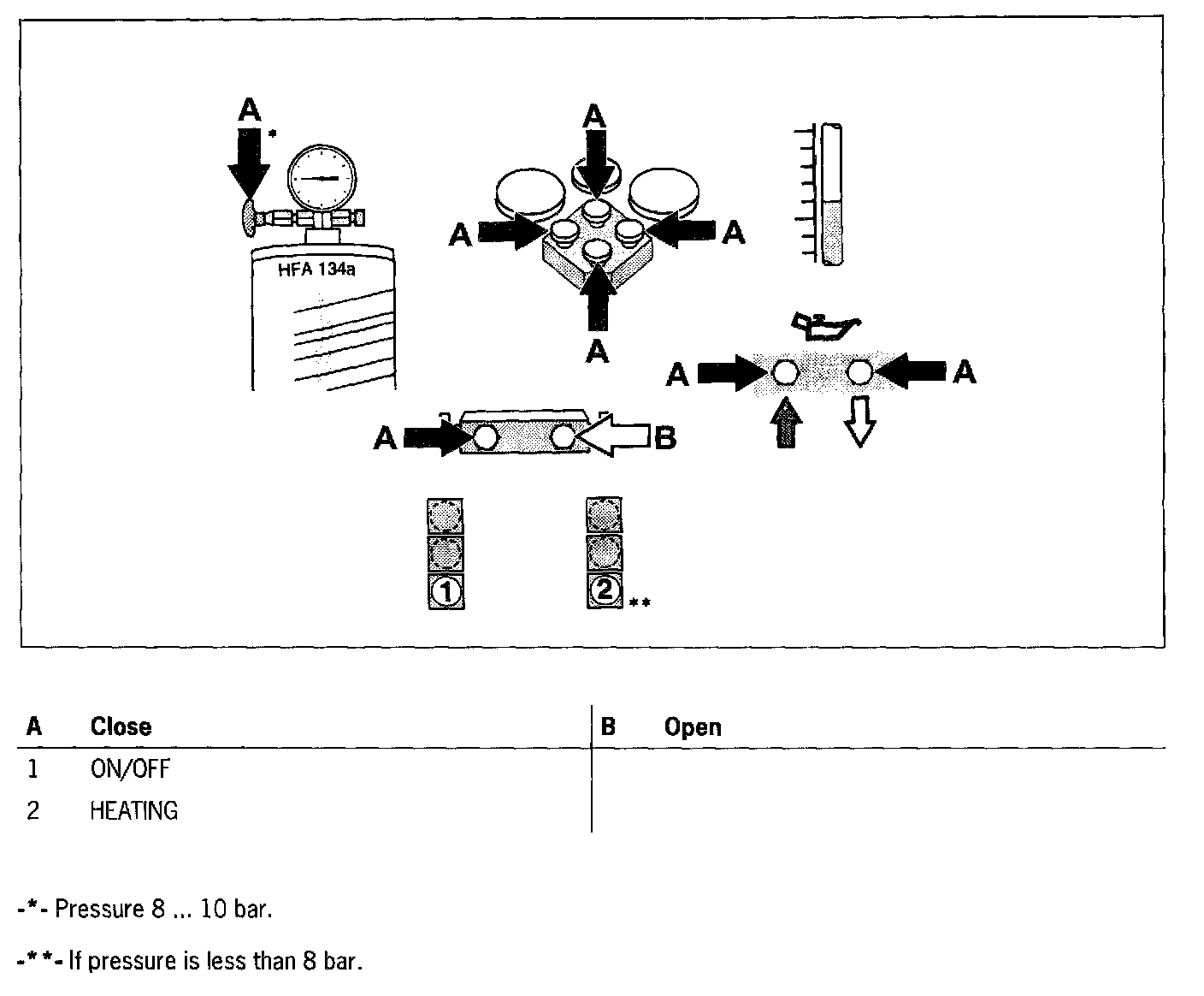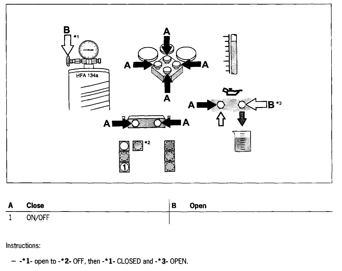 - After the refrigerant has been removed by suction and a component has been replaced, the oil quantity must be determined and topped up by the quantity remaining in the removed component.