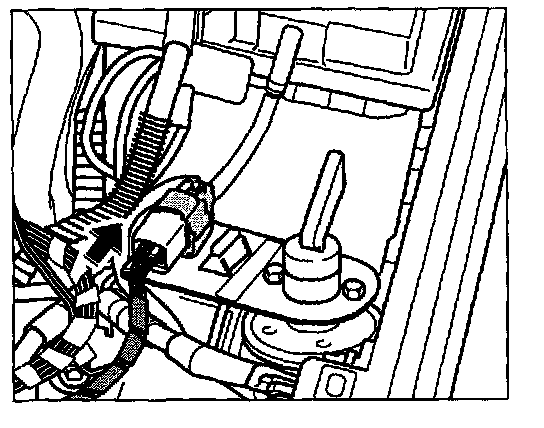 4. Lay the 6-pin plug under the right cowl panel cover and connect the plug to the 6-pin plug located under the right dome strut. Fasten the plug connection to the wiring harness with a tie wrap.