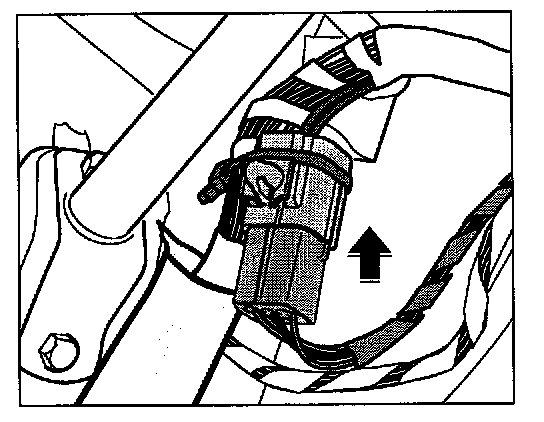 6. The additional plug connection of the jumper plug and the wiring harness (secured with tie wrap) is located under the right cowl panel cover in the area of the right dome strut. Cut the tie wrap with side cutters. Disconnect the 6-pin additional plug connection from the jumper plug and the wiring harness.