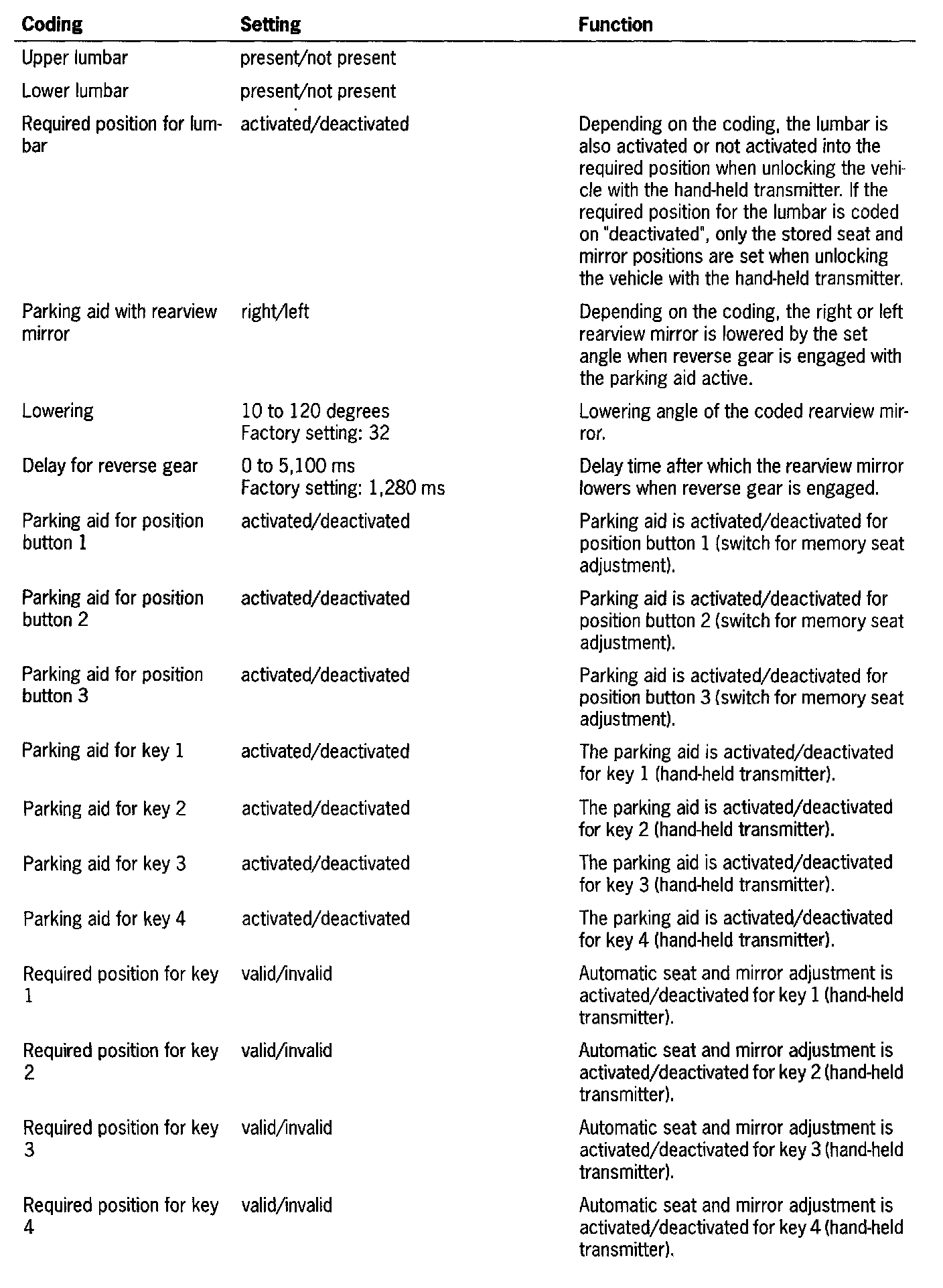 - After replacing the control module in the menu item "Modify coding", deactivate the required lumbar position.