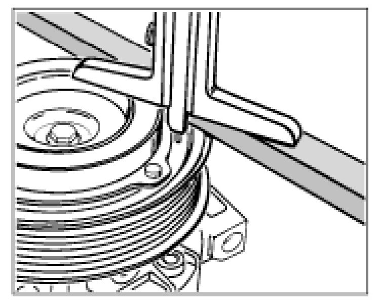 2. Place a rule on the outer edge of the belt pulley and use a depth gauge to measure up to the pressure plate.