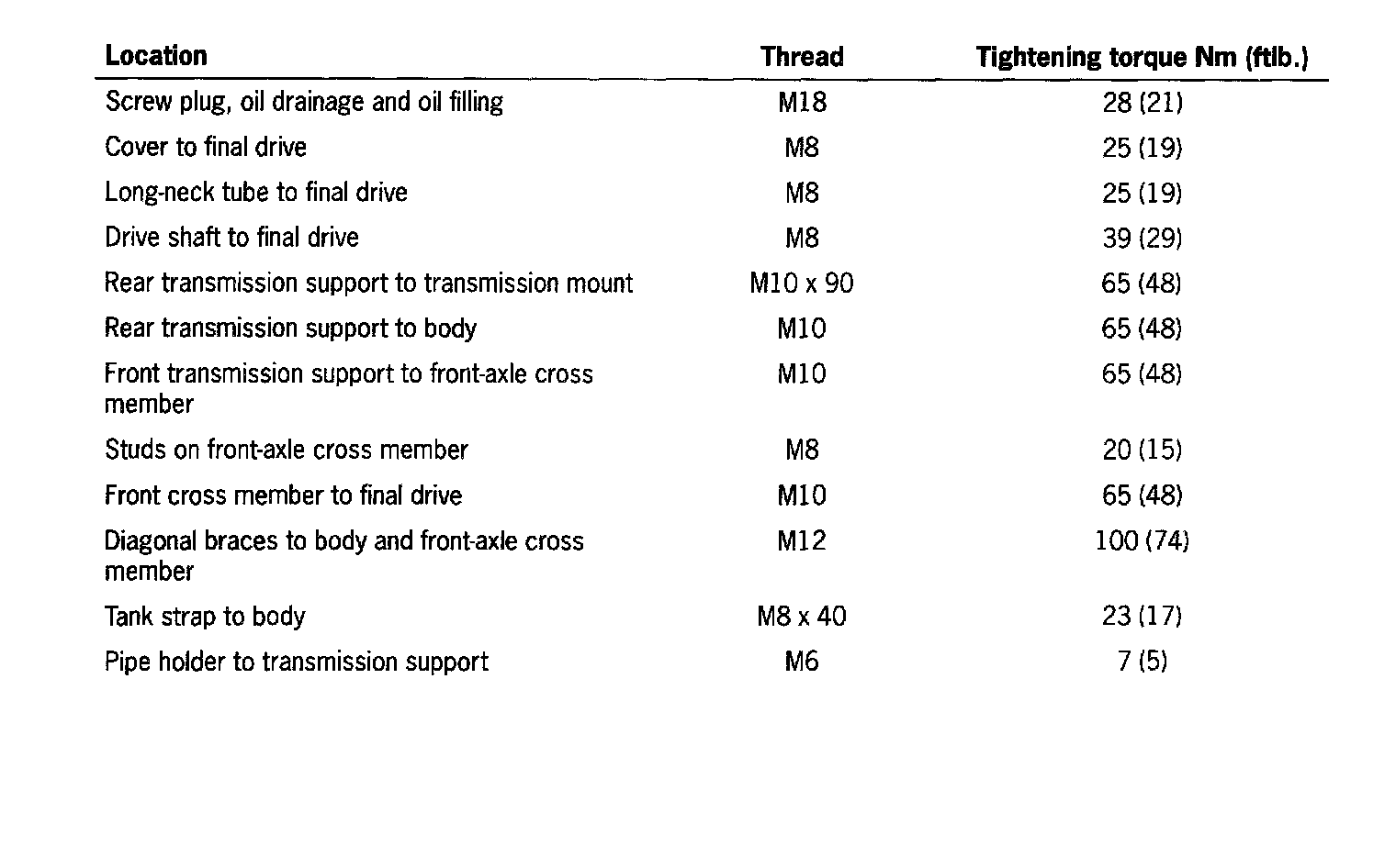 Tightening Torques for Tiptronic transmission