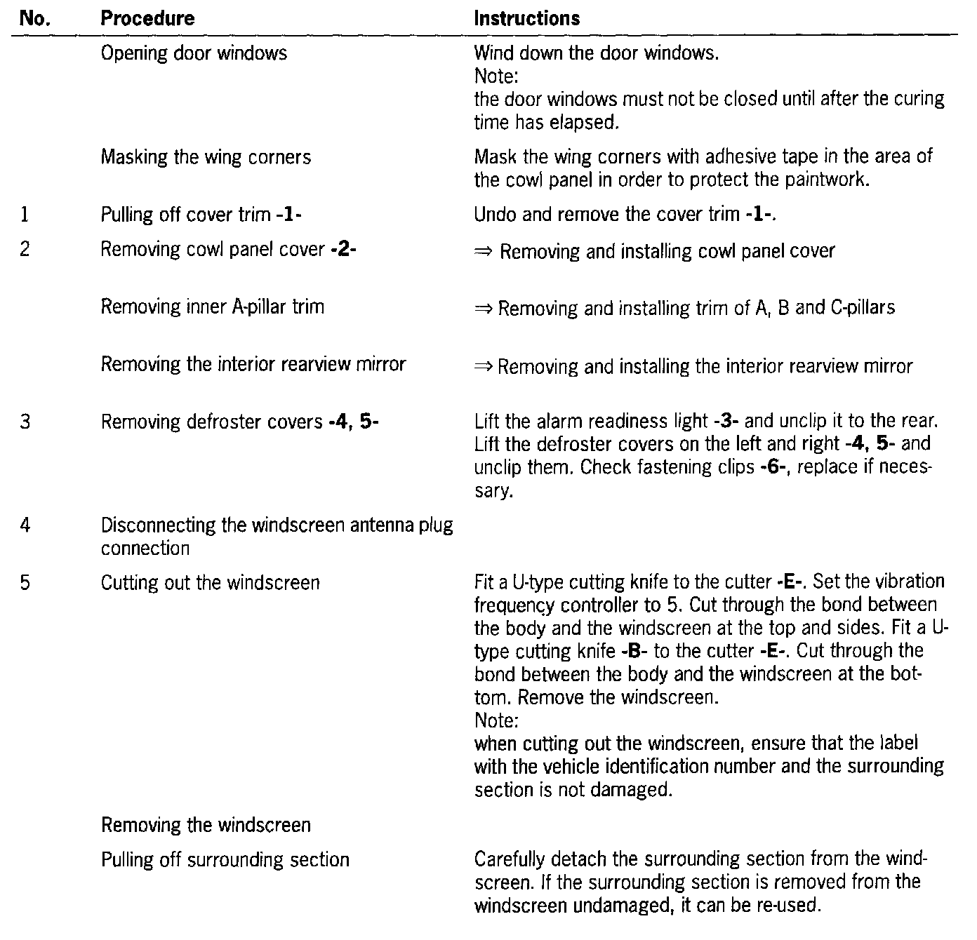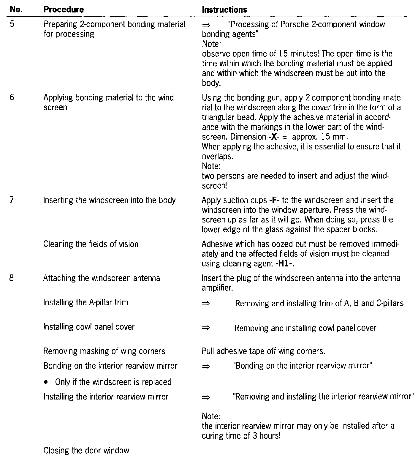 - Time between applying adhesive and inserting windscreen: max. 10 min