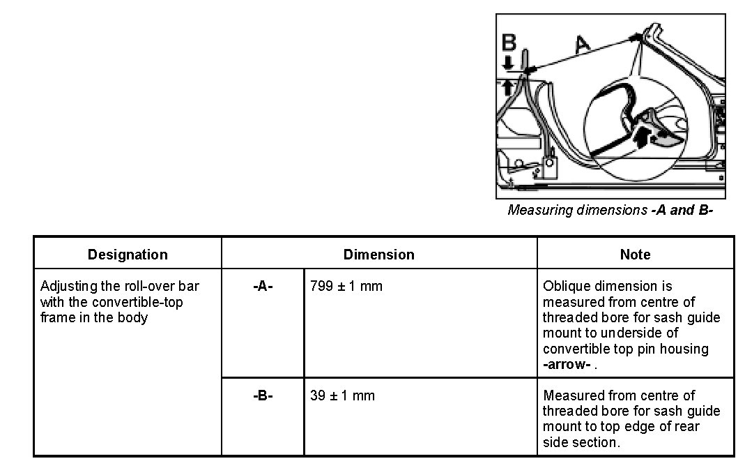 The convertible top is in the service position. Refer to Removing and installing convertible top.