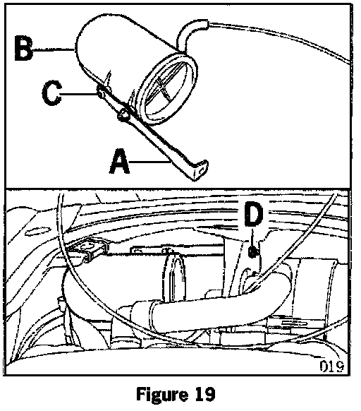 11.3 Insert vacuum reservoir in right engine compartment before the secondary-air pump and fasten screws and nuts (Figure 19, Item D).