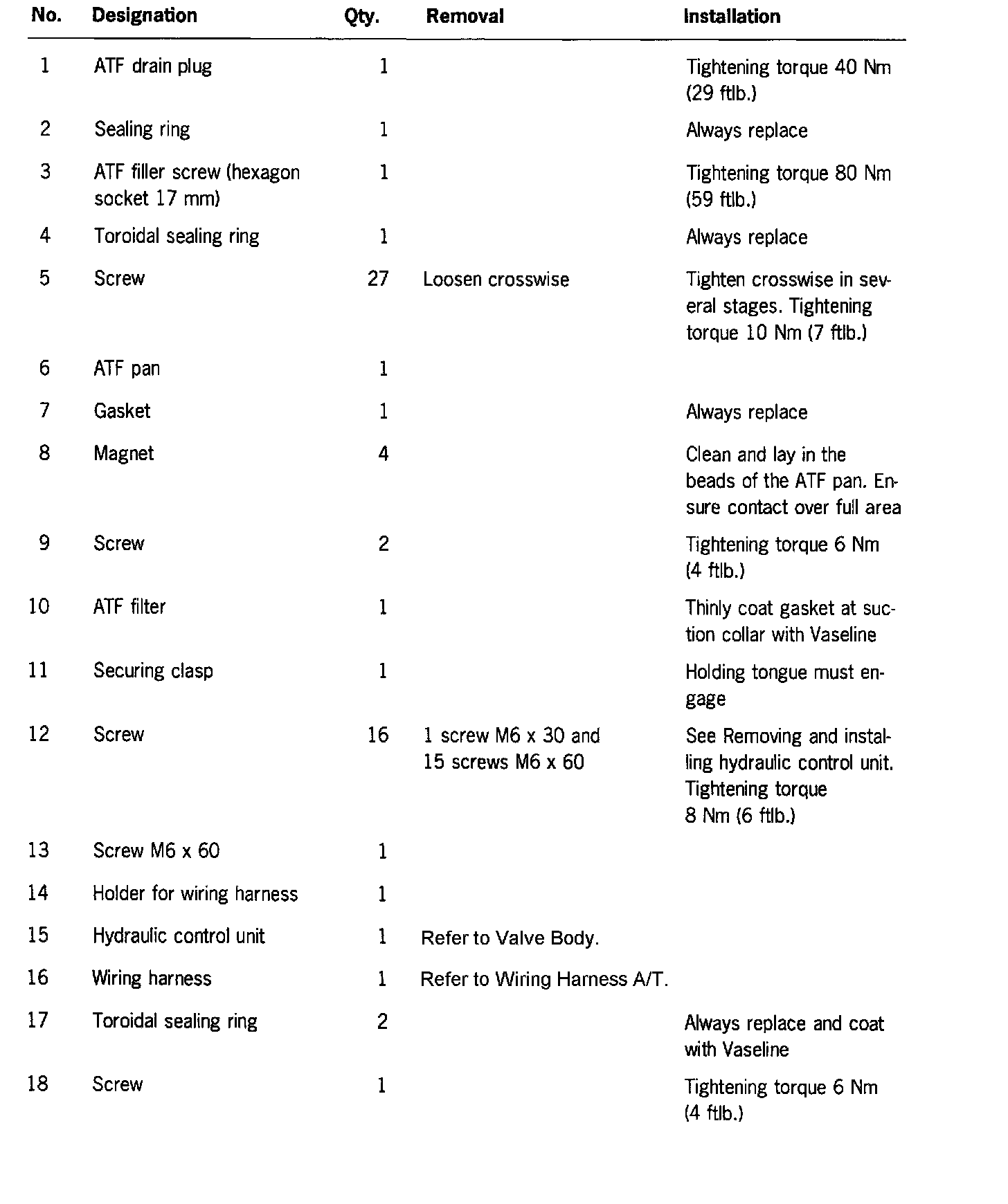 Note Do not let engine run with the ATF pan removed or without ATF filling.
