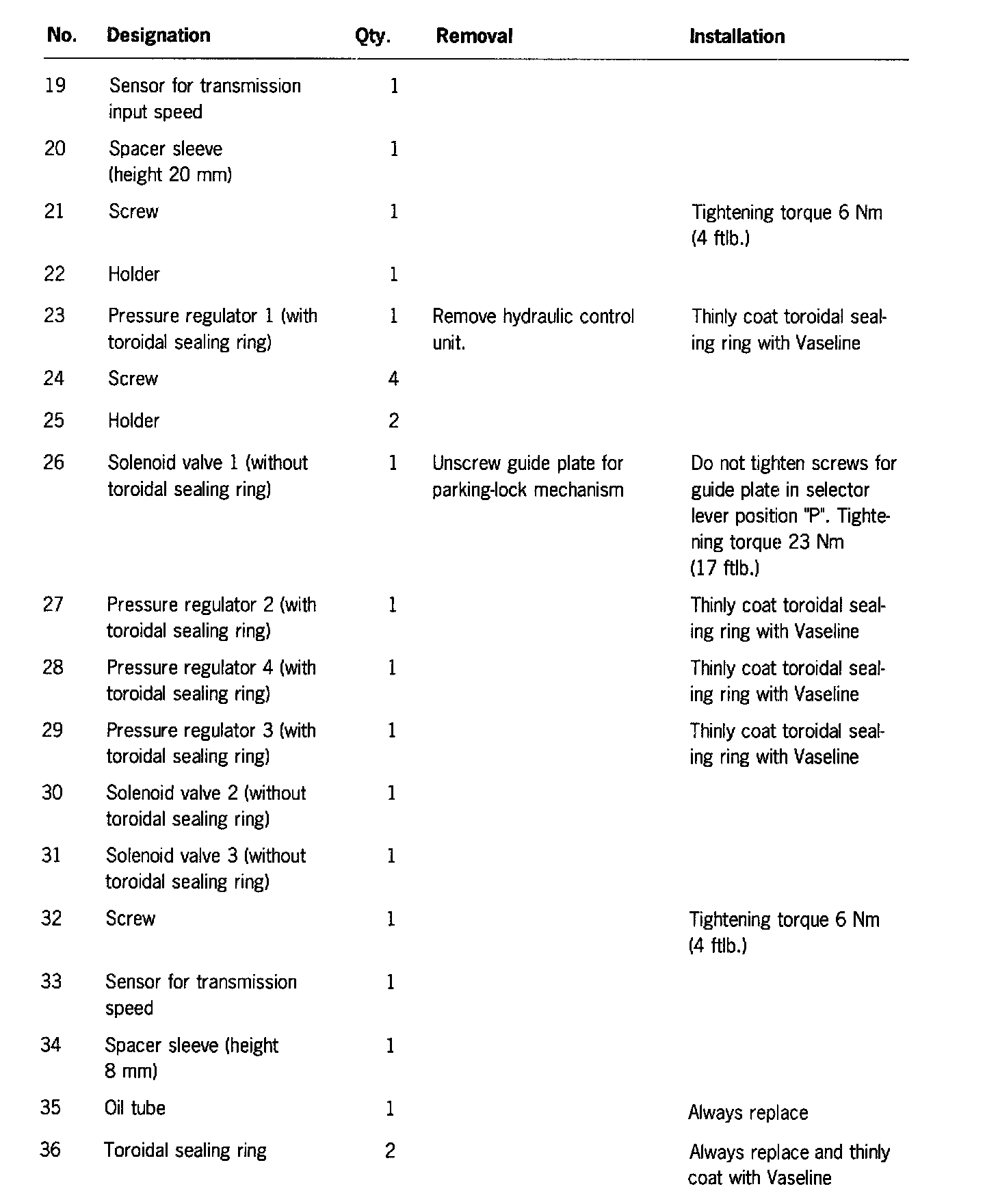 Note Do not lay removed hydraulic control unit on the sensor for transmission input speed at the reverse side of the hydraulic control unit. This could damage the sensor.