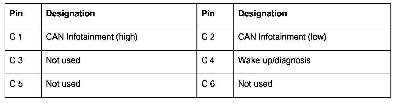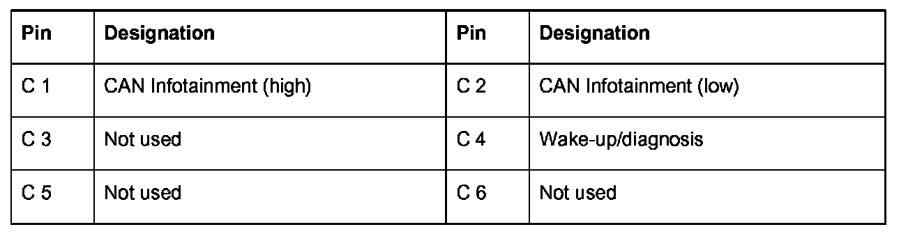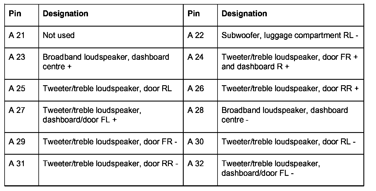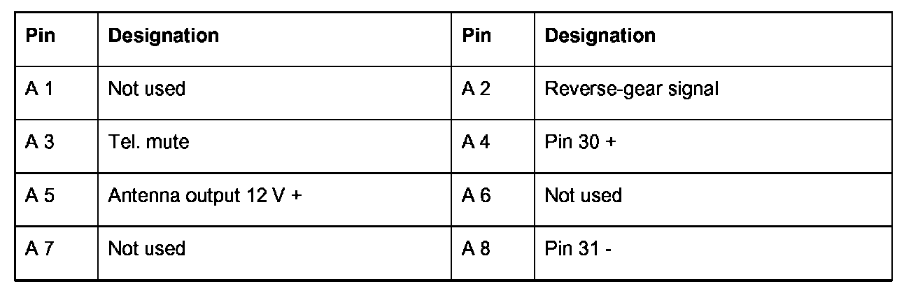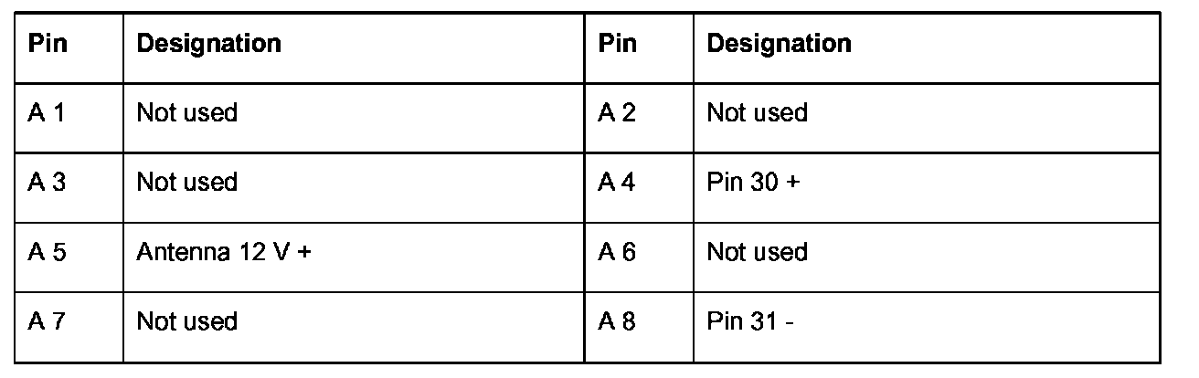 Connector pin assignments - external BOSE amplifier