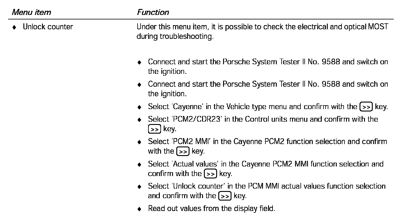 It is possible to read out the unlock counter under the 'Actual values' menu item.