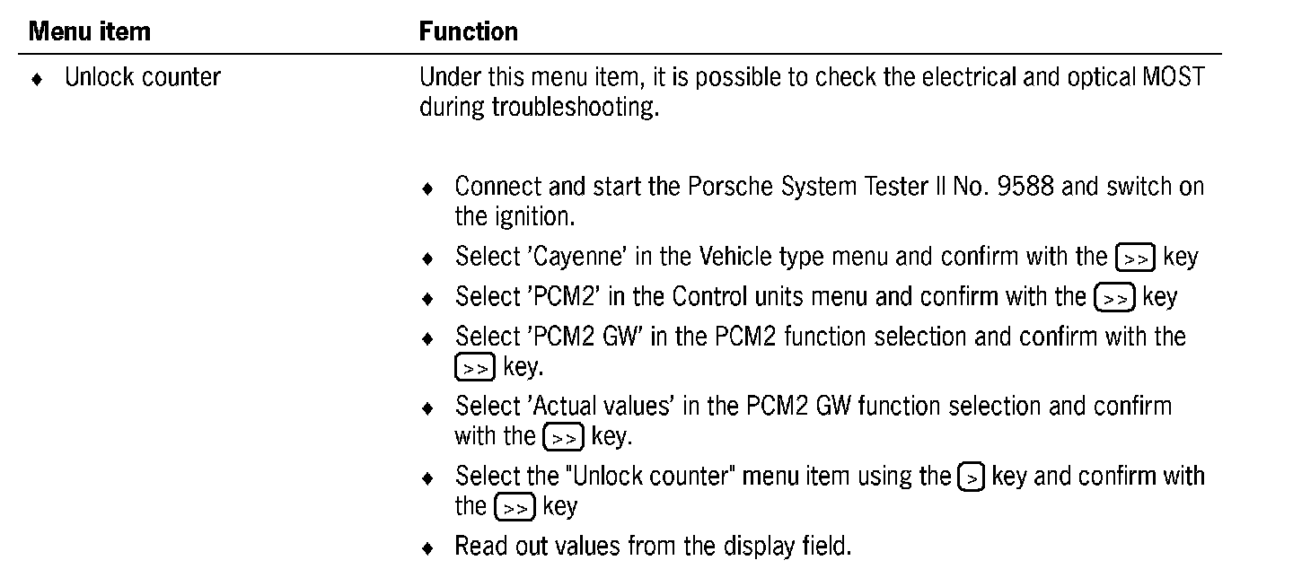 4. Select 'PCM2 GW' in the Cayenne PCM2 function selection and confirm with the [>>] key