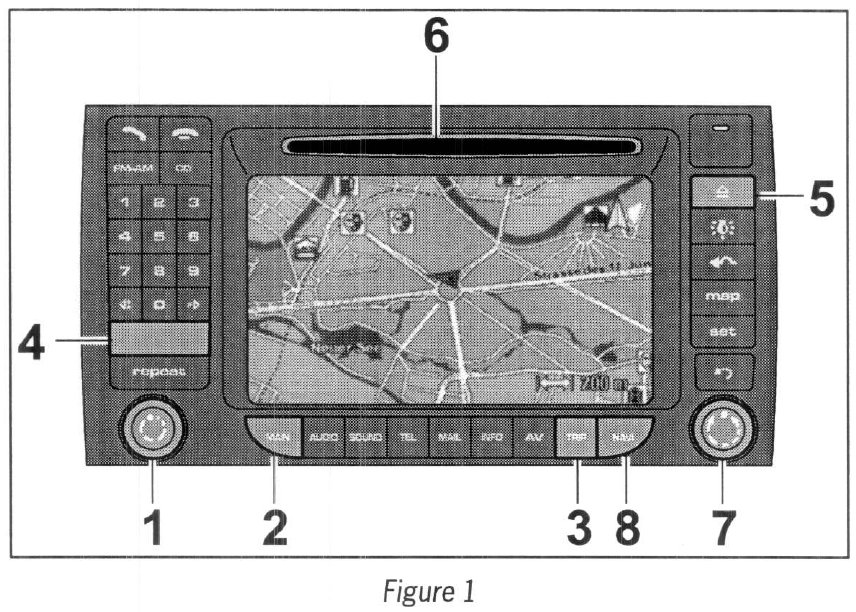 3.2 Press the NAVI button (--> Figure 1 -8-) and confirm the navigation system warning message by pressing the ROTARY KNOB (--> Figure 1 -7-).