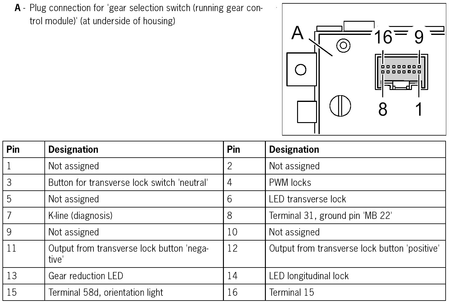 Gear selection switch connector assignment (running gear control module), '16-pin'