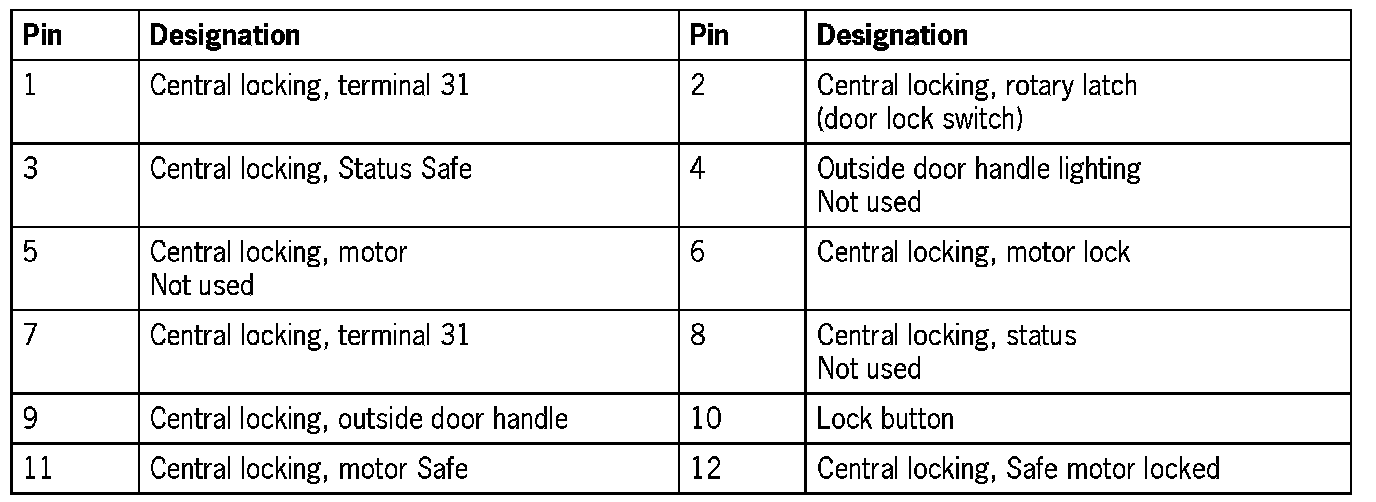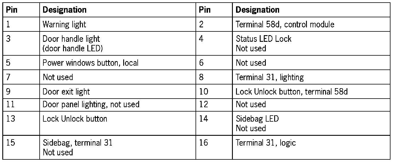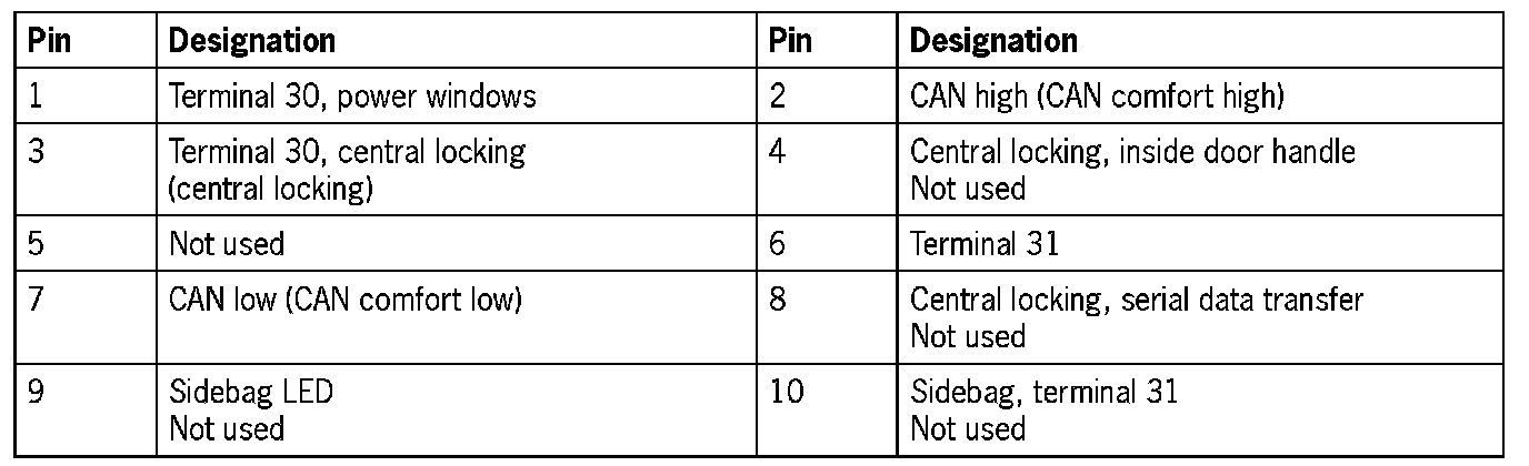 Connector Assignment, Rear Left And Right Door Control Modules