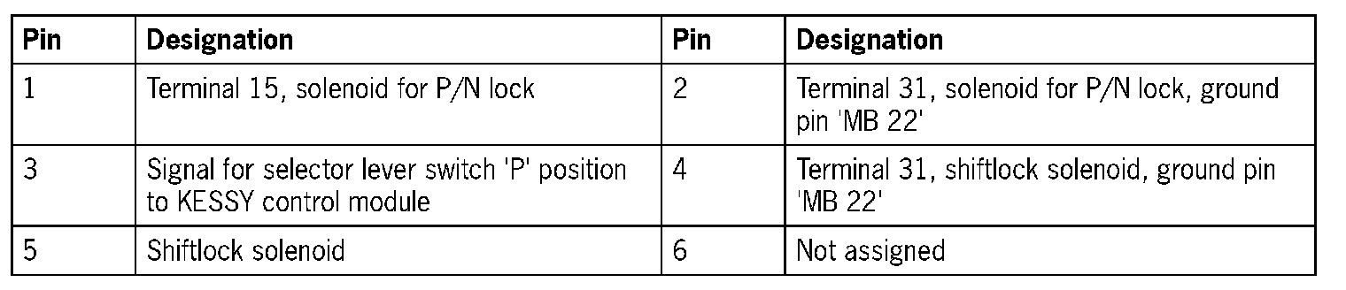 Connector assignmentTiptronic control module plug, '52-pin'
