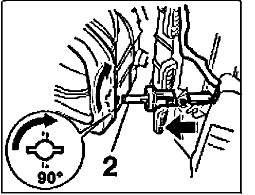 b. Slide in the temperature sensor -2- into the heating/air-conditioning unit and turn 90°.