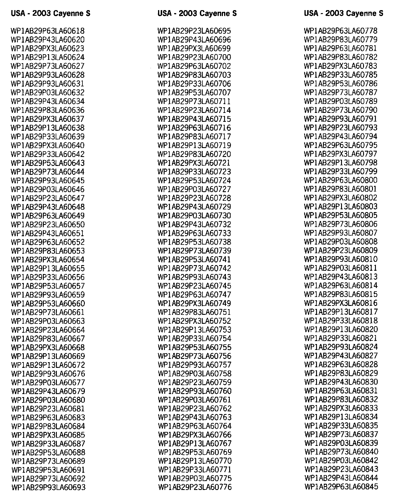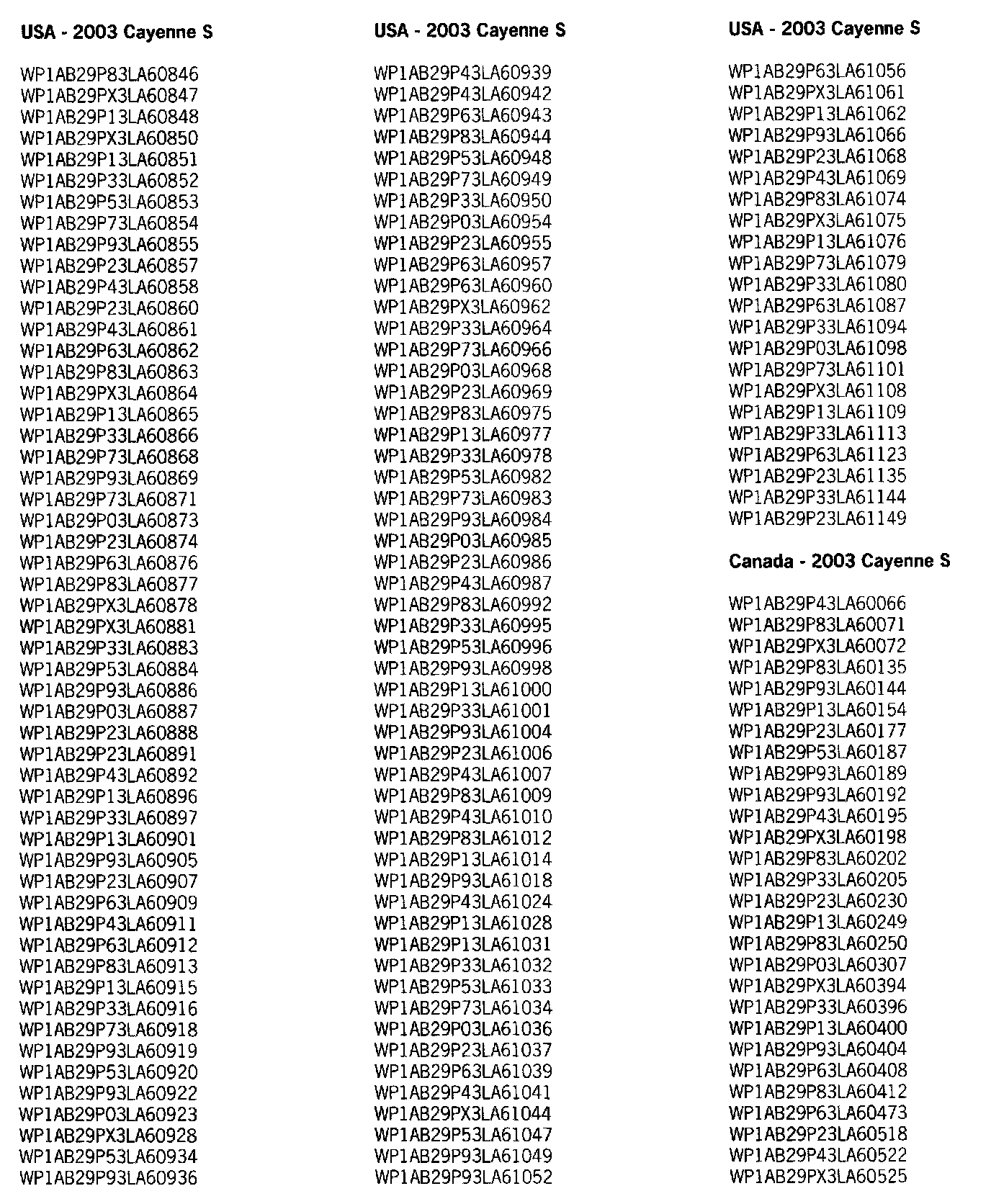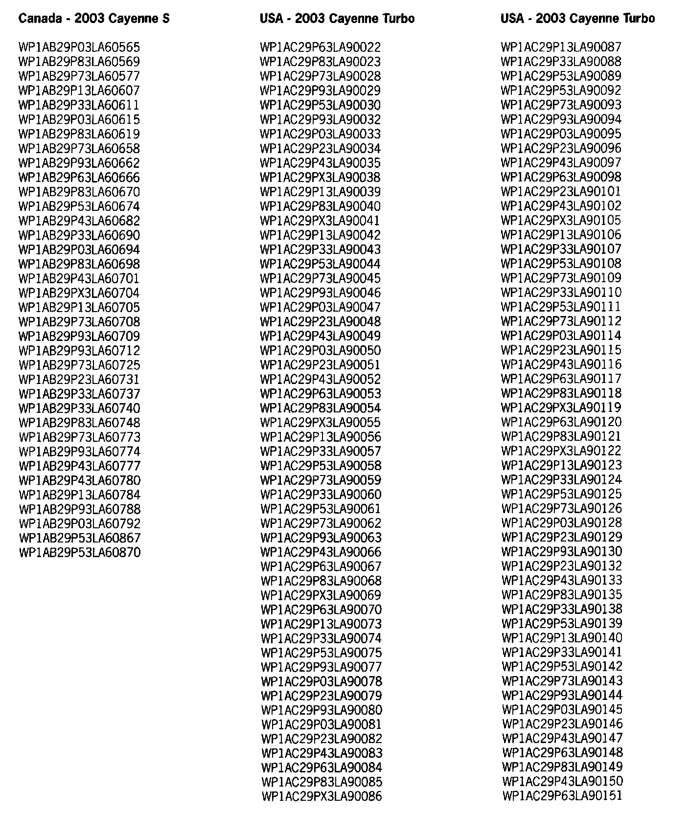 Very Important! Not every vehicle in the below listed range may be affected. Use the ranges below as a general guideline