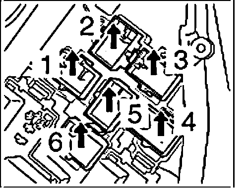 2. Press the sockets from below into the top half of the housing "arrows 1 - 6" refer to 'Socket identification' until the locking tabs engage audibly.