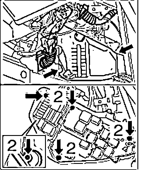 7. Unscrew the fastening screws "1" and remove the lid "arrows".