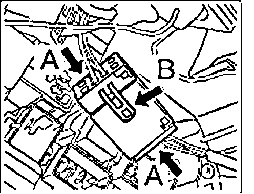 12. Unlock relay carrier "arrows A" and pull it out and up "arrow B".