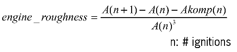 The engine roughness (angular acceleration change) for each combustion is calculated from several temporary and consecutive segment times as follows, see Diagnosis of Misfire (Luts Method):