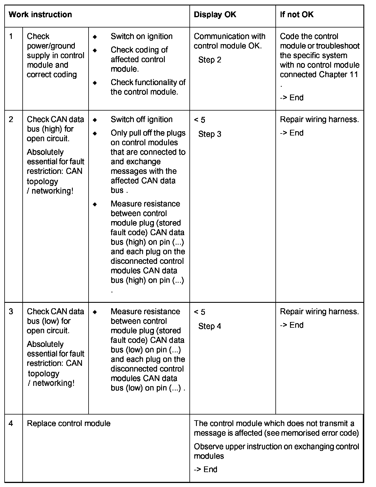 Cause of error 2, expected control module message missing/no communication possible with control module: