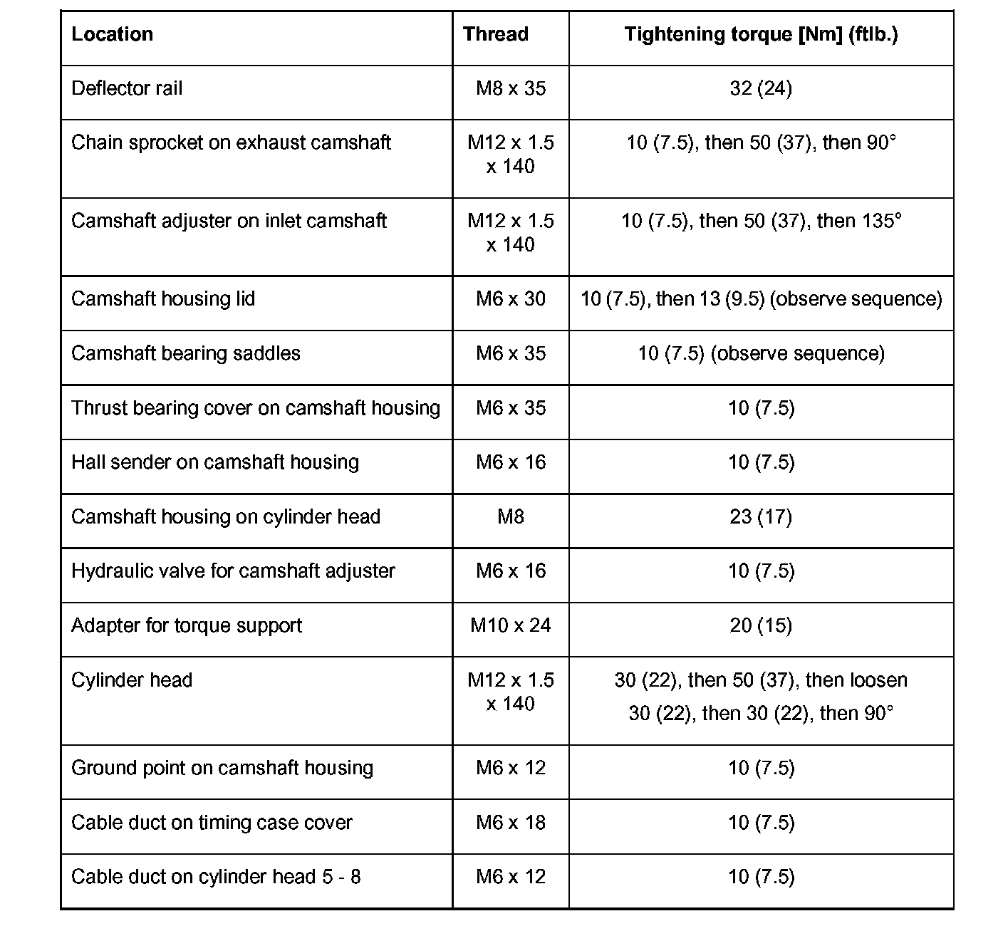 Tightening torques for Cayenne S (M48/00) and Cayenne Turbo (M48/50)Note:
