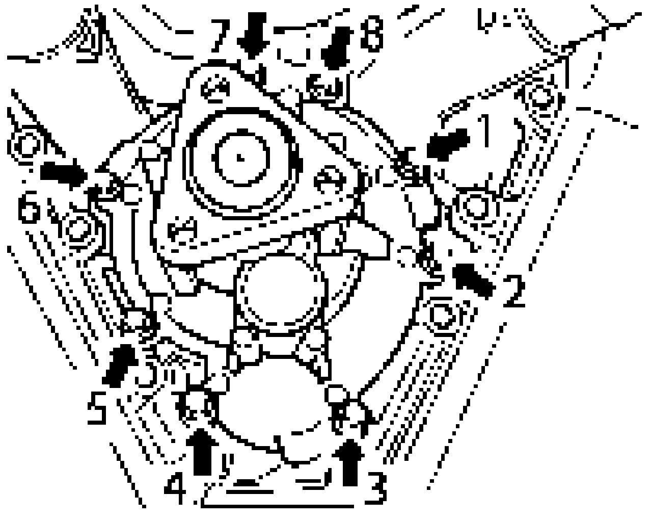 ^ Tighten screws 7 to 32 (M8 110.9) to 13 Nm (9.5 ft. lbs.).