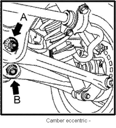Specified tightening torque for fastening nut to camber eccentric -A- = 133 ft lb.
