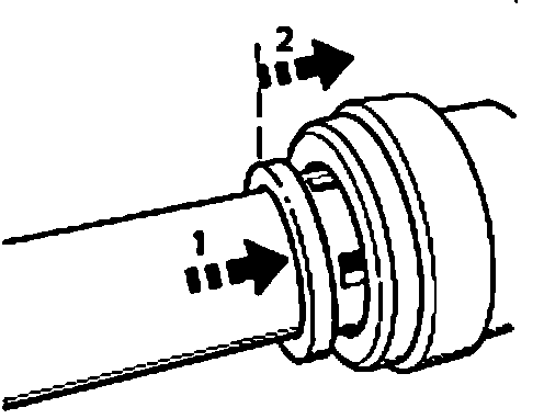 4. Push the snap ring into the flange -1- and then pull it off together with the flange -2-.