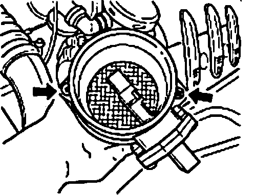 8. Loosen the hose clamp on the bottom of the hot film mass air flow sensor and remove the component from the engine compartment.