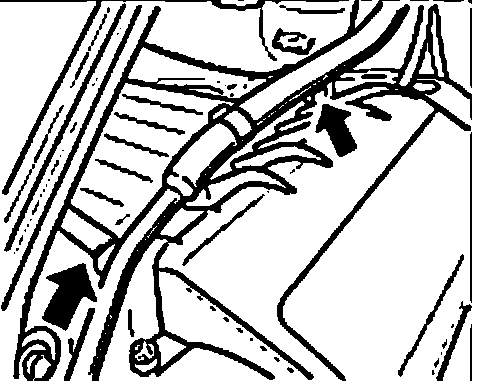 4. The coolant bleeder hose and the coolant overflow hose must be clipped back onto cylinder bank 1 - 4 on the air cleaner housing.