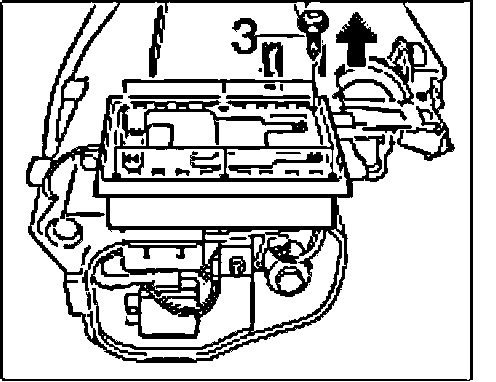 4. Remove all six fastening screws "3" and pivot up the control unit.