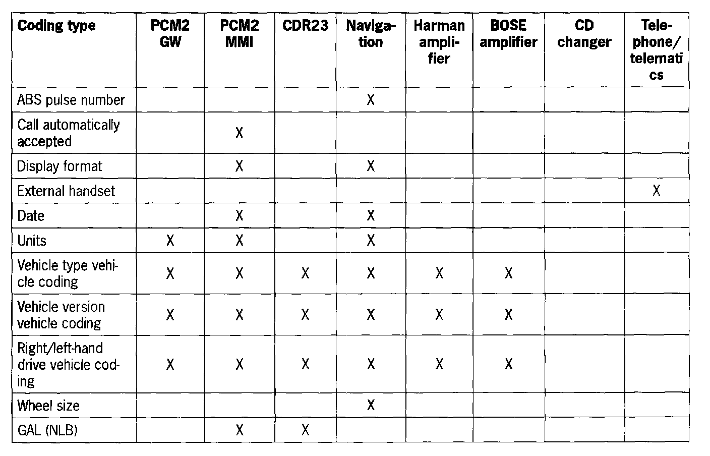 - When the PCM2 is replaced, the coding must be performed in accordance with the connected MOST control modules.