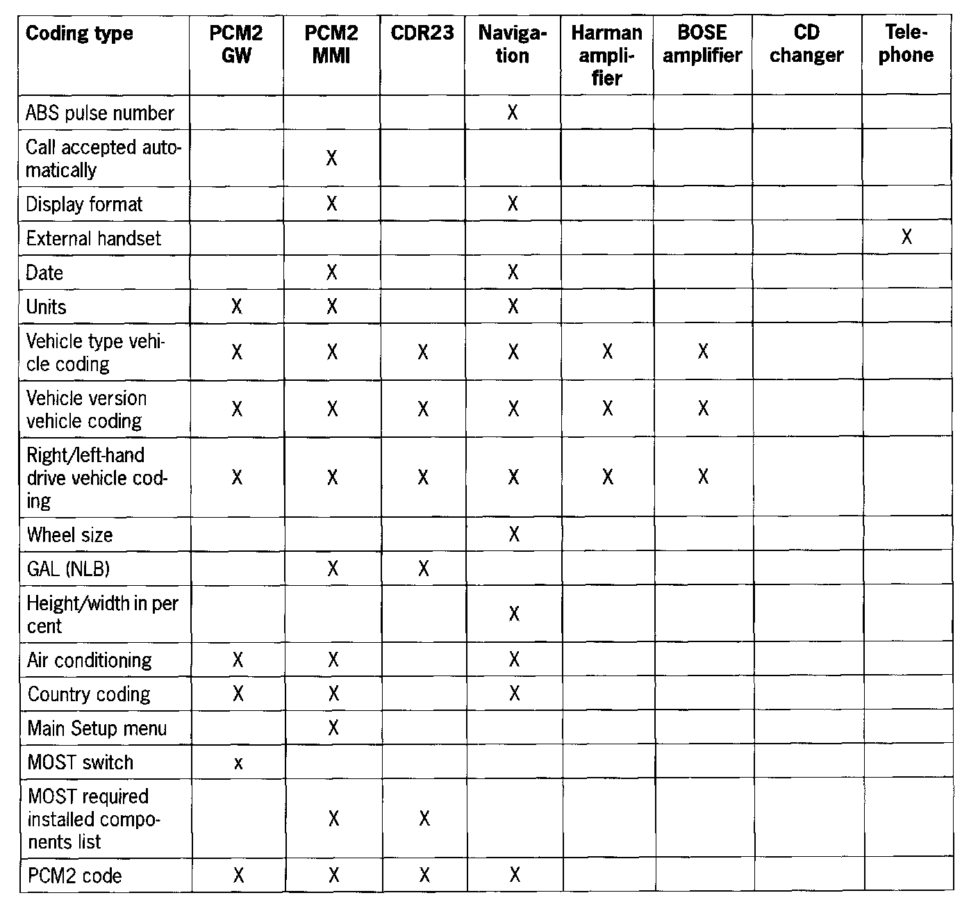 - When the PCM2 is replaced, the coding must be performed in accordance with the connected MOST control modules.