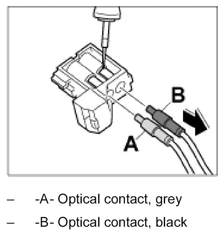 1. Insert the optical contacts -B- and -A- in the module until it engages audibly. Check the optical contacts for tightness.