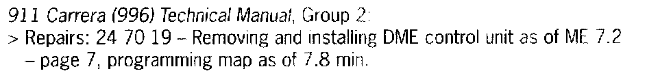 8. Program the DME control module according to the specifications of the 911 Carrera (996) Technical Manual, Group 2, Chapter 24 70 19.