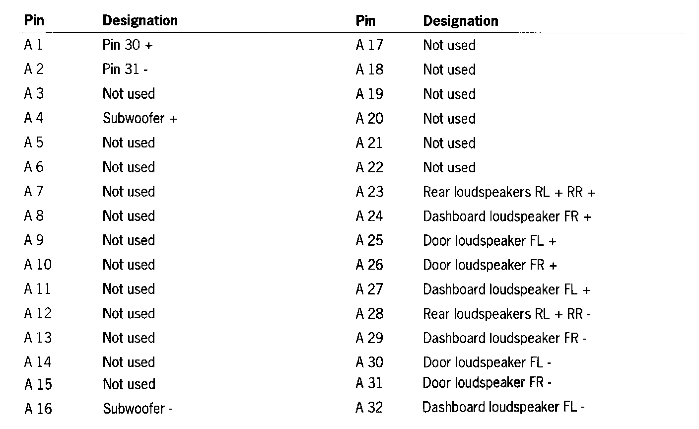 External BOSE Amplifier Connector Assignment