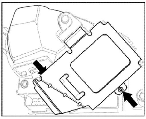 3. Unscrew fastening screws -arrow- from the control module holder and remove holder.