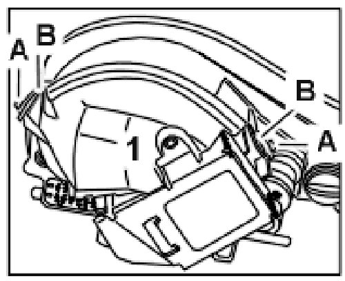 5. Put the cap -1- into position and press down until both locking tabs -B- engage. Screw in both fastening screws -A-. Tightening torque: 4 Nm (3 ftlb.).