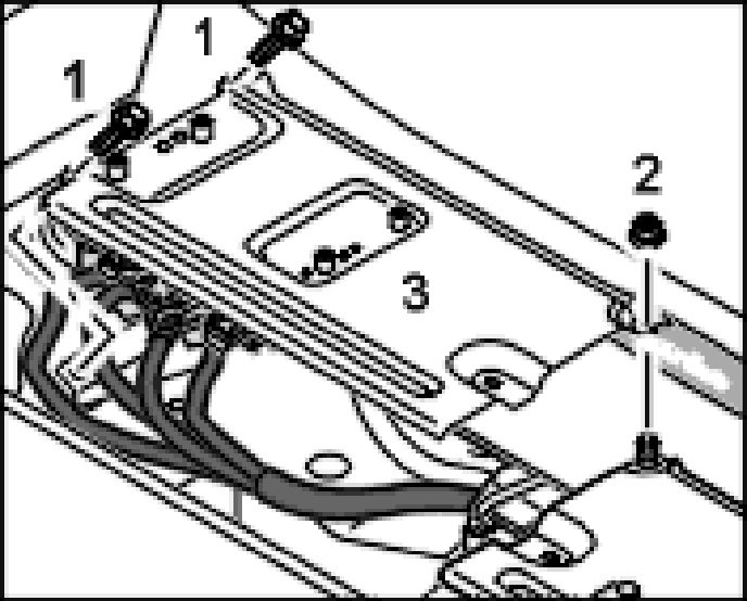 7. Unscrew 4 fastening screws on the control module holder -3- and remove the control module.