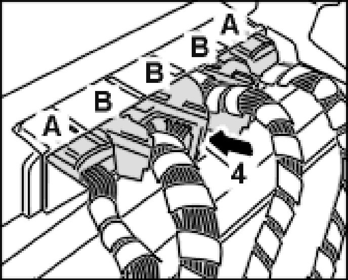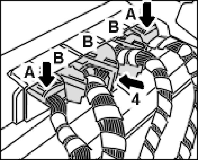 6. Push in connectors -B- locking -arrow- and actuate the latching lever -4- .